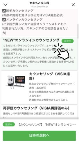 やまもと皮ふ科公式LINEからオンラインカウンセリングの予約をお願いします。
